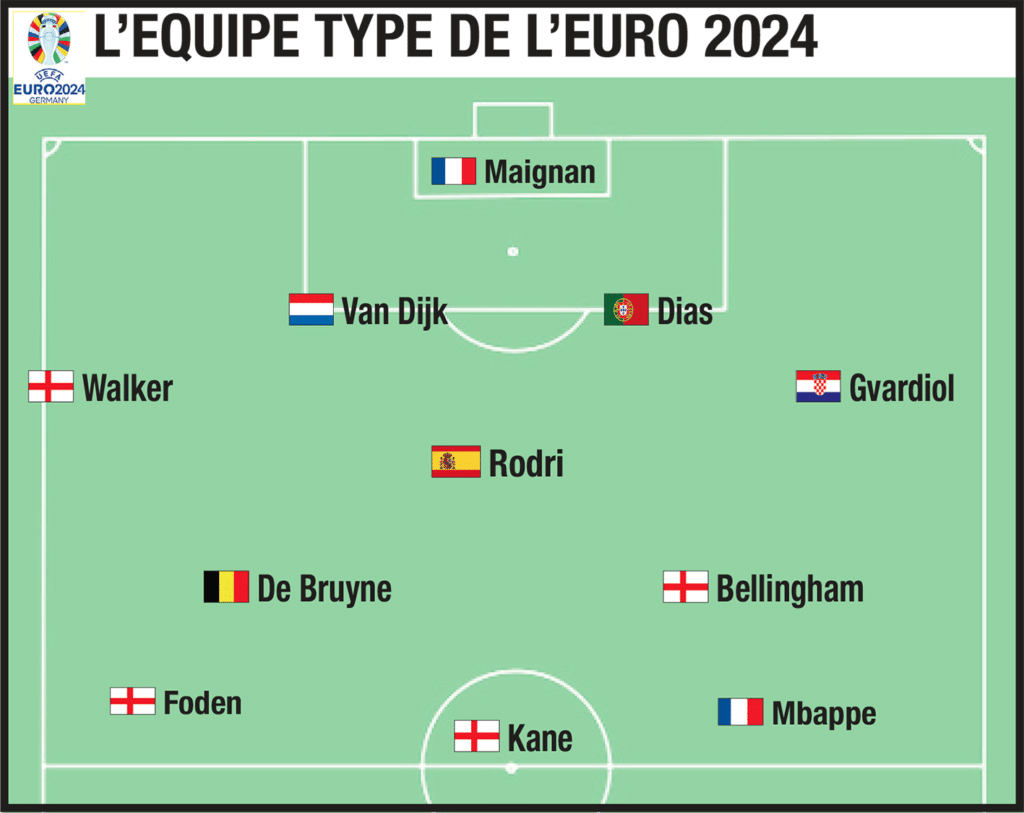 Même si plusieurs stars, comme Courtois, Haaland ou bien sûr Vinicius, ne seront pas en Allemagne, l’équipe type de la compétition a une belle allure. Rendez-vous est déjà pris pour un bilan de notre « équipe type », le 14 juillet, après la finale. A noter que plus de la moitié de notre équipe type évolue dans le club de Manchester City.