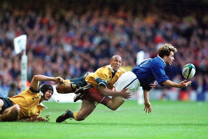 À lireSix Nations : le top 10 des plus grands joueurs de l’histoireJ’y ai pensé, mais mes filles ont déjà perdu leur papa, elles ne voulaient pas perdre en plus leurs amis. On a donc décidé de rester. Dès qu’on met la clé dans la porte, il y a le souvenir de Christophe. Je n’ai pas enlevé la photo de Christophe à l’entrée où un joueur australien (en finale de la Coupe du Monde 1999, Ndlr) essaie de l’attraper par le pied, mais Christophe est déjà lancé. Il va tomber, mais il va mettre l’essai. Elle est belle cette photo.