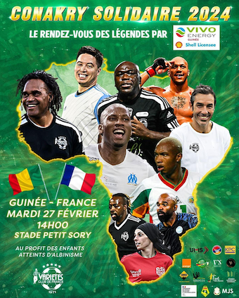 C’est un véritable évènement en Guinée. Les 26 et 27 février prochains, le Variétés Club de France va disputer un Match de Gala Solidaire au profit des Enfants atteints d’Albinisme.