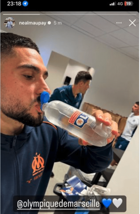 Pour ne rien arranger, la saison dernière, lors de la victoire de l’OM à Lyon (3-2, à 10 contre 11), après un final étourdissant (deux buts dans les arrêts de jeu), Neal Maupay n’avait pas hésité à chambrer les Lyonnais en publiant sur les réseaux sociaux une photo de lui en train de boire l’OL à la bouteille (voir ci-dessous)…