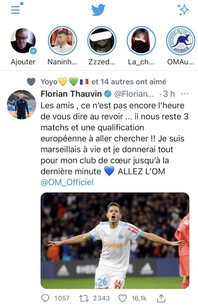 Florian Thauvin a d’ailleurs fait part de toute sa motivation pour aider l’OM à décrocher l’Europe, à travers un tweet très clair. « Ce n’est pas encore l’heure de vous dire au revoir », écrit le n°26 de l’OM. « Il nous reste 3 matchs et une qualification européenne à aller chercher (…) Je donnerai tout pour mon club de cœur jusqu’à la dernière minute ».