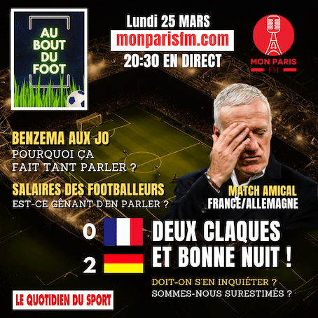 Faut-il s’inquiéter pour les Bleus ? Benzema aux Jeux Olympiques ? Mbappé n°9 ? Rendez-vous à 20H30, avec AU BOUT DU FOOT 25/03/2024