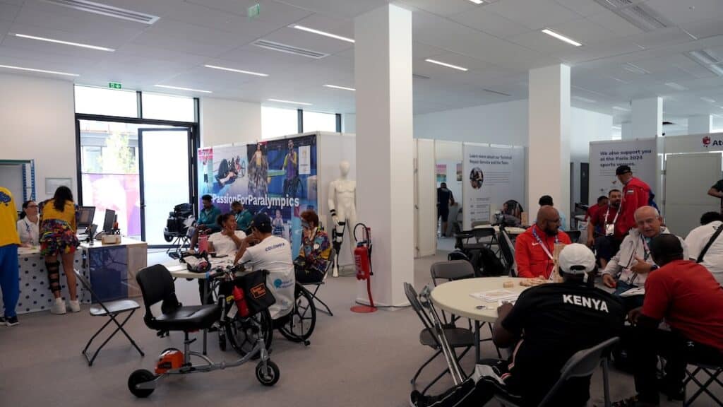 Lors des Jeux, on avait parlé de ces américains qui profitaient de leur passage au village olympique pour profiter des soins médicaux et dentaires gratuits, et bien, avec les Paralympiques, c’est le matériel qui est privilégié. Contrairement à Tokyo (il fallait faire plusieurs kilomètres pour s’y rendre), le Repair Center a été installé au coeur du village.
