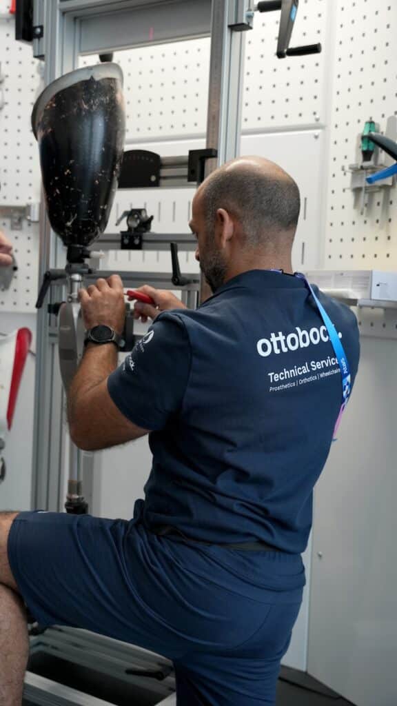 Les premières missions des super mécano d’Ottobock (qui a déplacé plusieurs tonnes de machines, outils et imprimante 3D sur place) ont été de remettre en état le matériel des para-athlètes. « Pas des Américains, des Chinois ou des autres grands pays développés, mais plutôt, les athlètes des petits pays en voie de développement » nous explique Bertrand Azori, directeur technique. « Pour certains athlètes, c’est l’occasion d’un lifting complet et gratuit, puisque toutes nos interventions sont gratuites ».