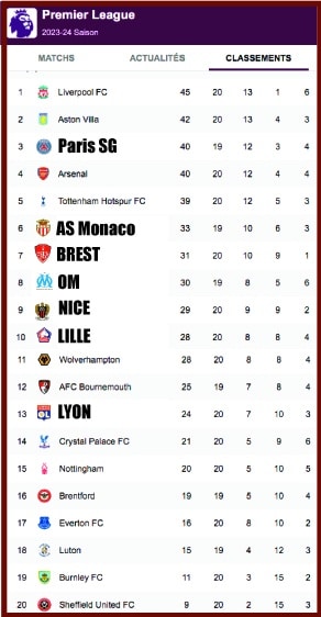 Nous avons fait comme-ci ces clubs de Ligue 1 participaient à la Premier League. Si le PSG peut viser un podium, pas un ne serait dans le TOP 6.
